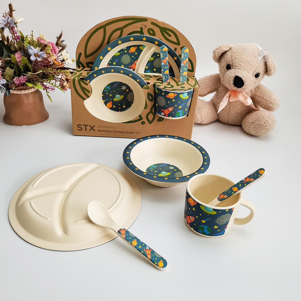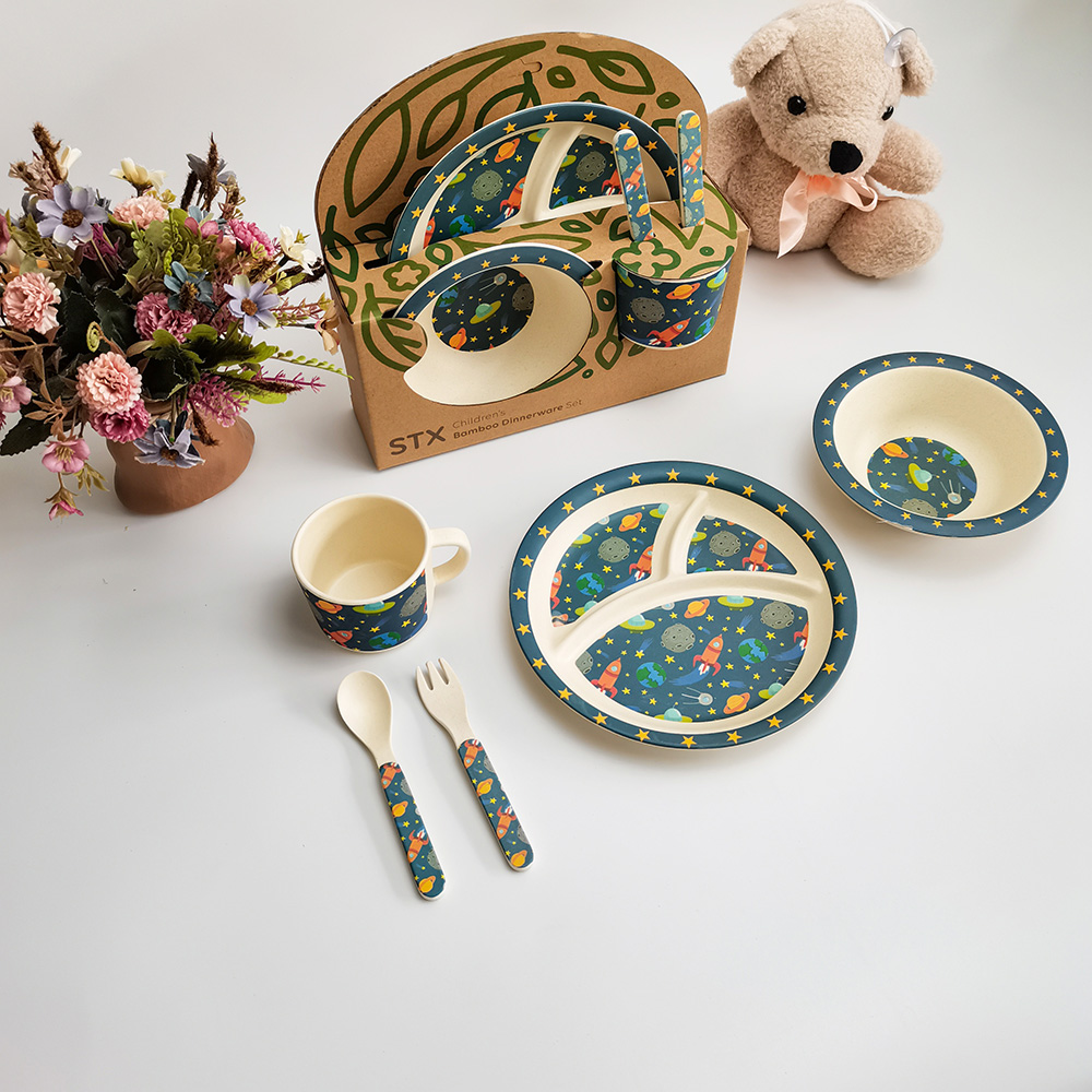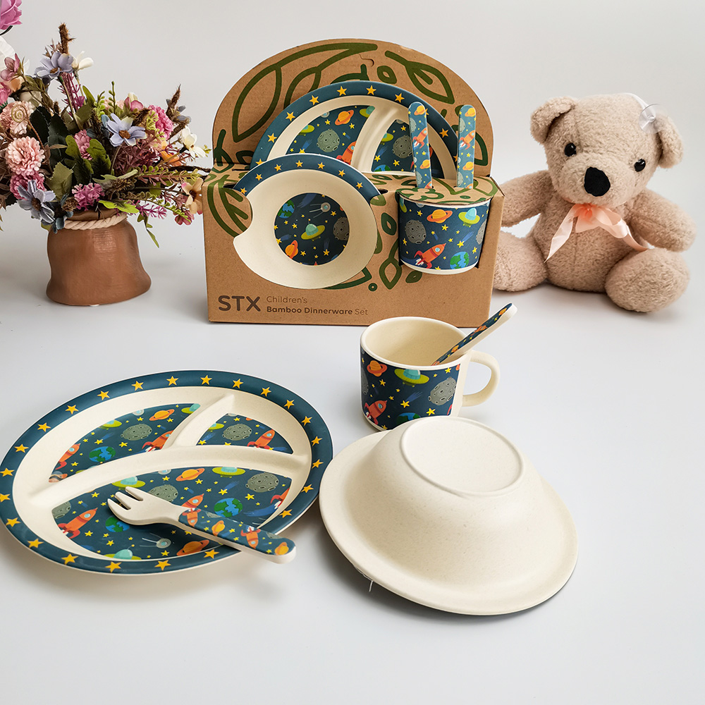 • OEM شعار طباعة الحيوان الخيزران الألياف الطفل الأطفال مجموعة أدوات المائدة عشاء