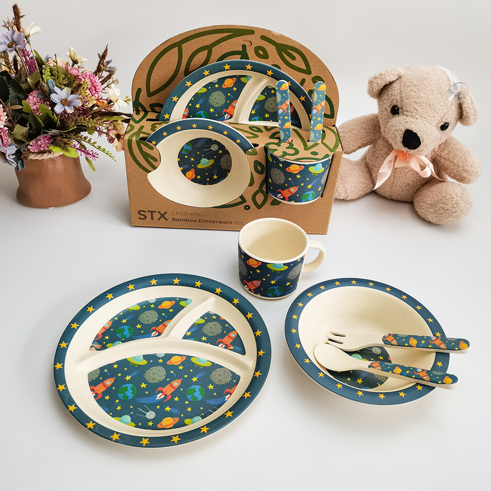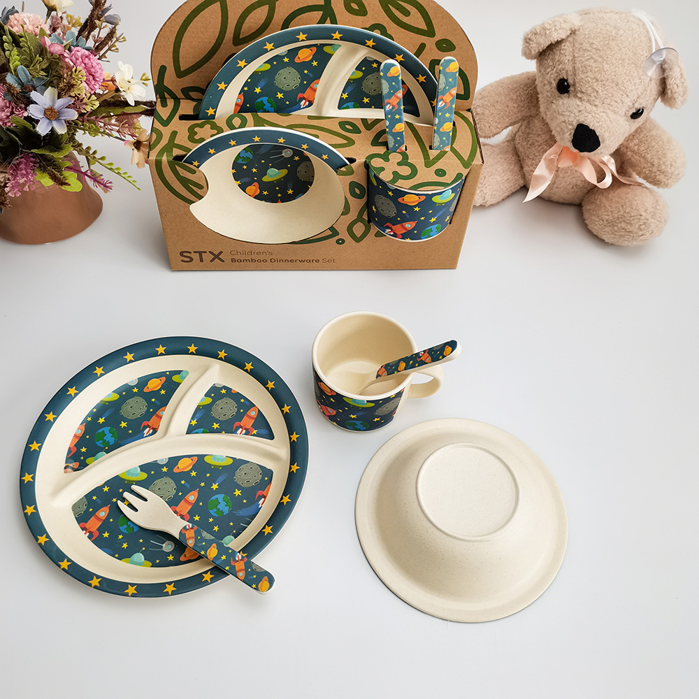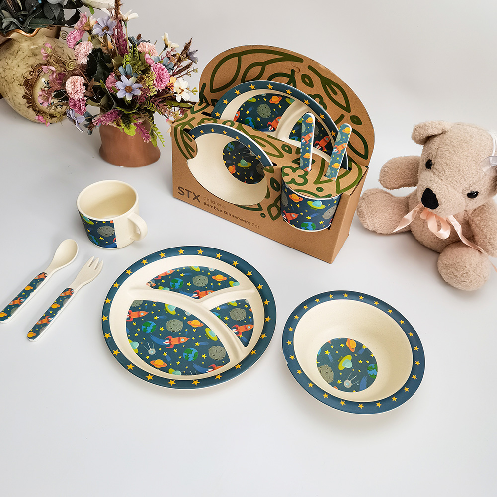 OEM شعار طباعة الحيوان الخيزران الألياف الطفل الأطفال مجموعة أدوات المائدة عشاء Wholesale